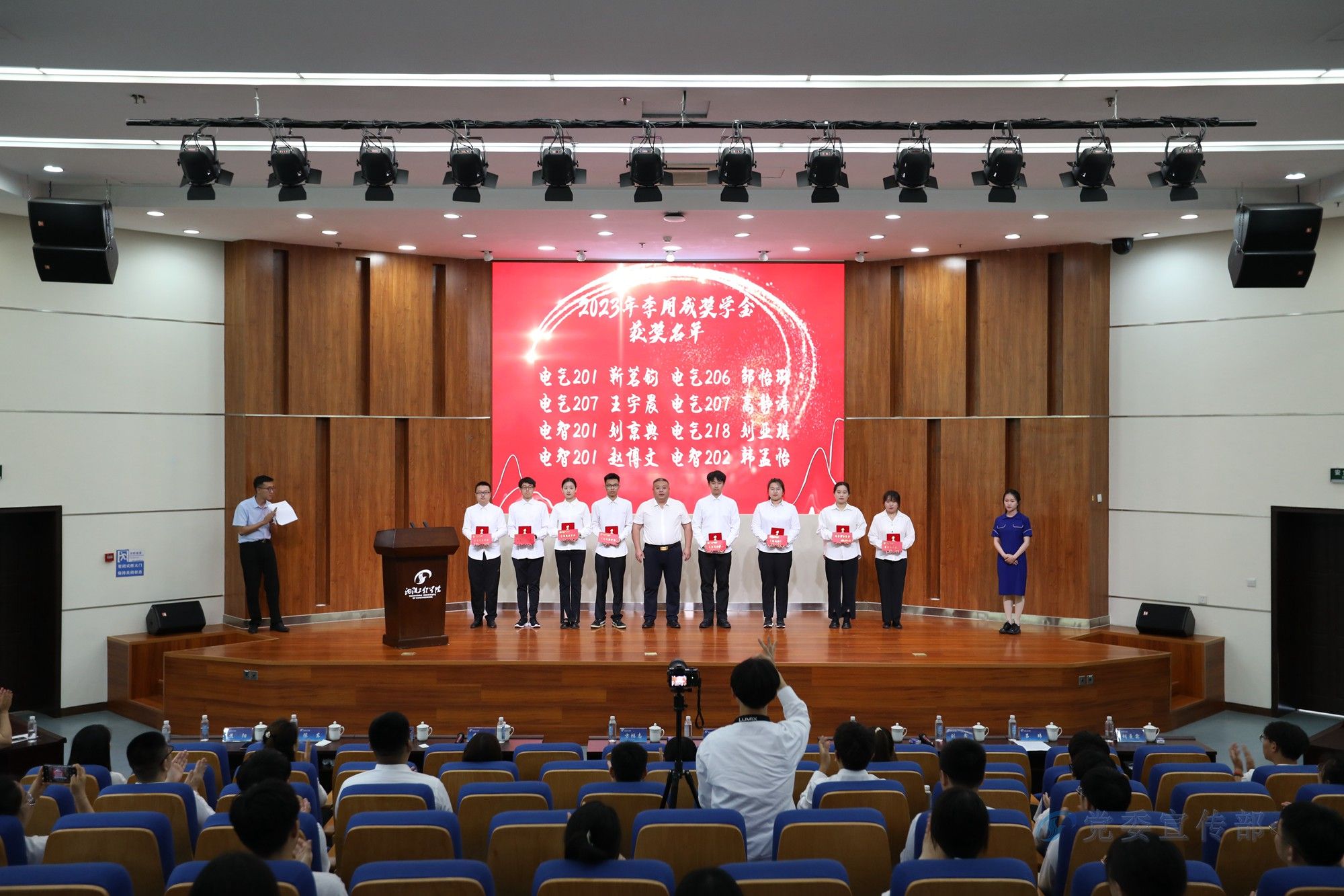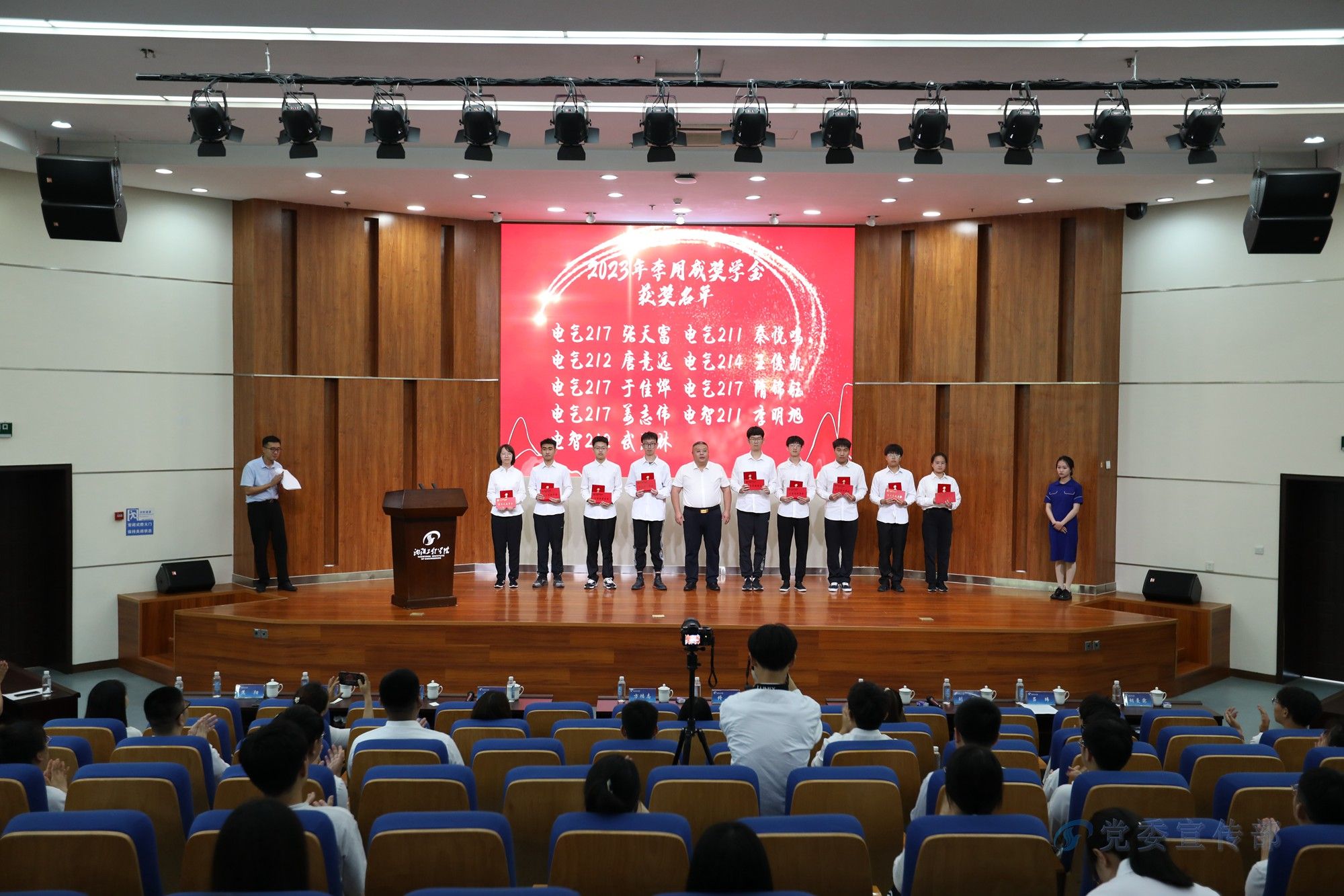 电力学院党委副书记兼副院长胡曼霖宣读获奖名单;李用成为获奖学生颁奖;获奖学生代表电力学院电气203班申嘉琳发言。