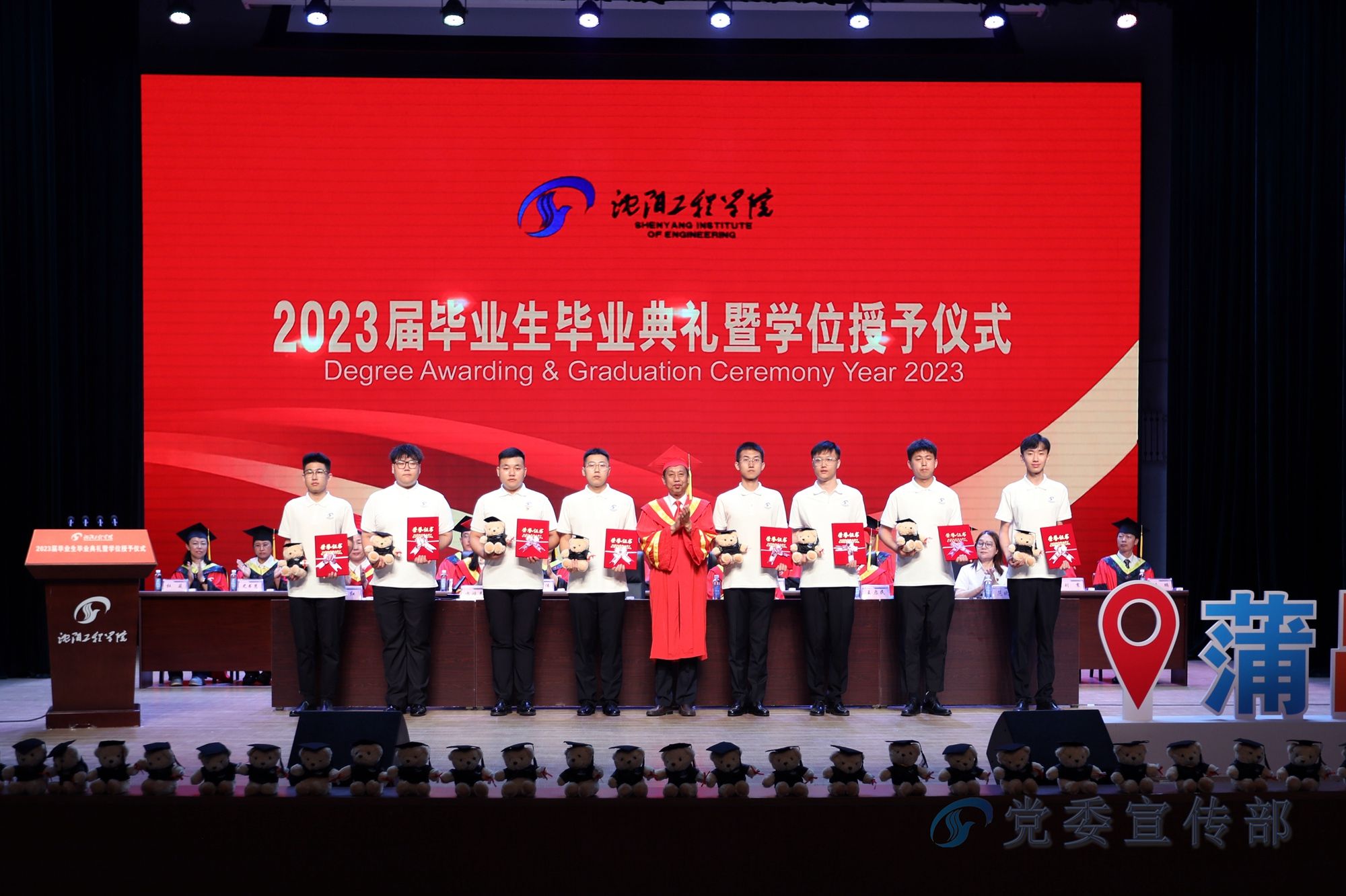 伴随着庄严的国歌,毕业典礼正式开始。副校长王启民宣读了《关于准予孟圆等3128名2023届本科毕业生、王一涵等220名2023届专科毕业生毕业的决定》和《关于授予孟圆等3112名本科毕业生学士学位的决定》;张红宣读了《关于表彰2023届辽宁省普通高等学校优秀毕业生的决定》《关于表彰沈阳工程学院2023届“毕业十星”的决定》;王国辉为毕业生代表颁发毕业证书,并分别为2023届本科毕业生代表、2022届本科毕业生代表和留学生代表授予了学士学位;佟刚为学校“2023届毕业十星”和辽宁省优秀毕业生代表颁发了荣誉证书与纪念品。