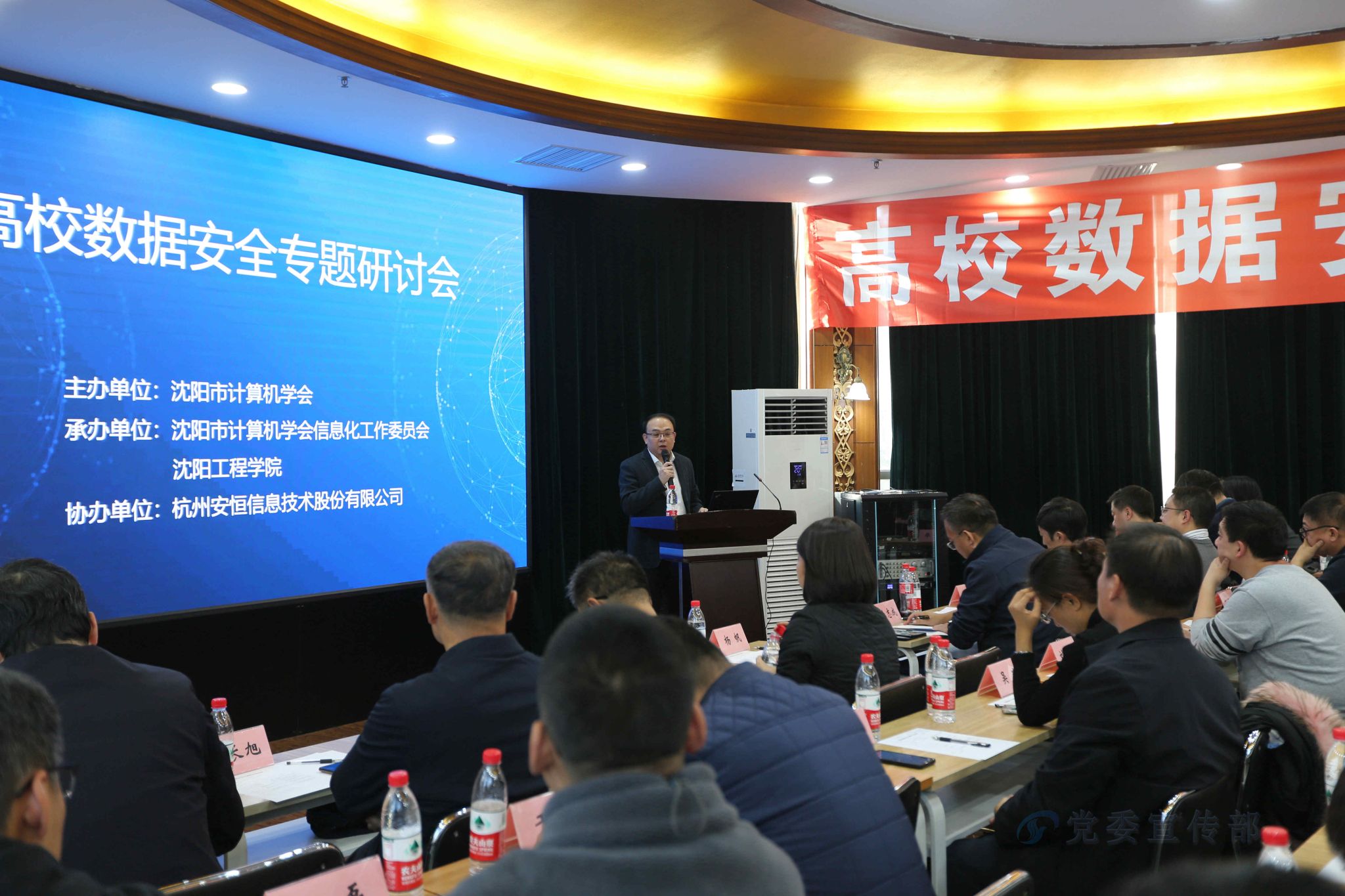 11月10日,由沈阳市计算机学会主办,沈阳市计算机学会信息化工作委员会及我校承办,杭州安恒信息技术股份有限公司协办的“高校数据安全专题研讨会”在我校宾馆一楼会议室成功召开。会议旨在探讨高校数据安全的现状、挑战与问题,解读网络数据安全文件和标准,分享解决方案,并展望未来高校数据安全的发展趋势。辽宁省教育厅科技与信息化建设处副处长杨帆,我校党委常委、宣传部部长张红,沈阳市计算机学会秘书长邵华在会上分别致辞,各高校相关负责人和我校各部门信息系统管理员近百人参加会议,会议由沈阳理工大学现代教育与技术中心主任杜焱主持。