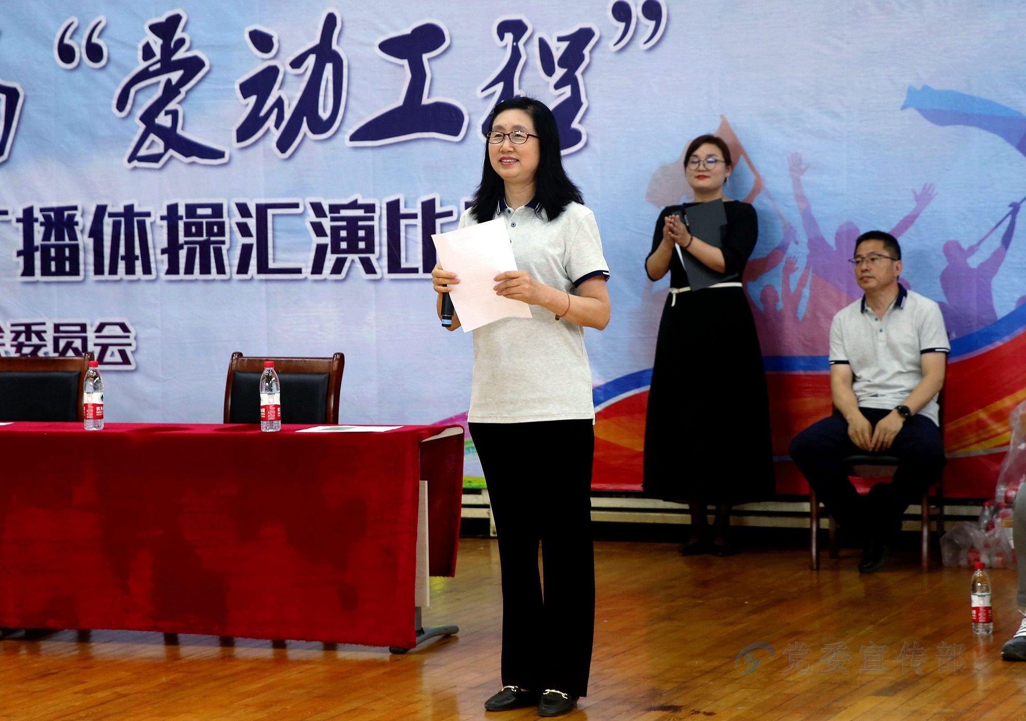 今天的校园洋溢着欢快的气氛,体育馆内飞扬着生命的活力!在端午佳节即将到来之际,校工会在体育馆内举办首届教职工“爱动工程”第八套广播体操会演比赛。党委书记佟刚、副书记方鸿志,副校长王启民,党委常委、党委宣传部部长张红,以及部分中层干部、分工会主席全程观摩比赛。