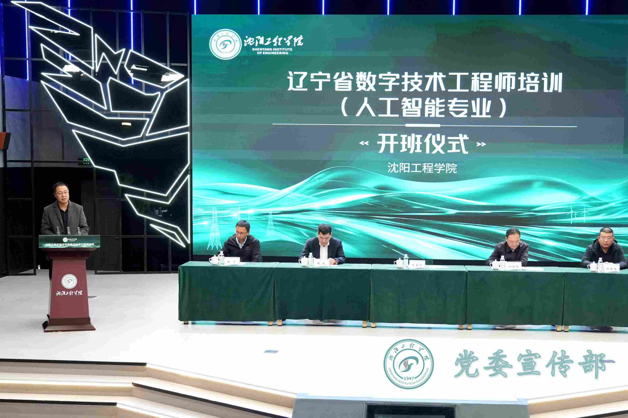 10月25日,辽宁省首期数字技术工程师(人工智能专业)培训班开班仪式在沈阳工程学院I座灵感楼多媒体功能厅数字化教育基地举行。辽宁省人力资源和社会保障厅副厅长谷孝红、人才工作处处长段云鹭、二级调研员房岫,沈阳市人社局人才开发与市场处副处长孙宁,我校校长王国辉、副校长赵琰及相关职能部门和二级教学单位负责人、参训教师以及数字技术相关专业的师生代表参加了本次活动。赵琰主持开班仪式。